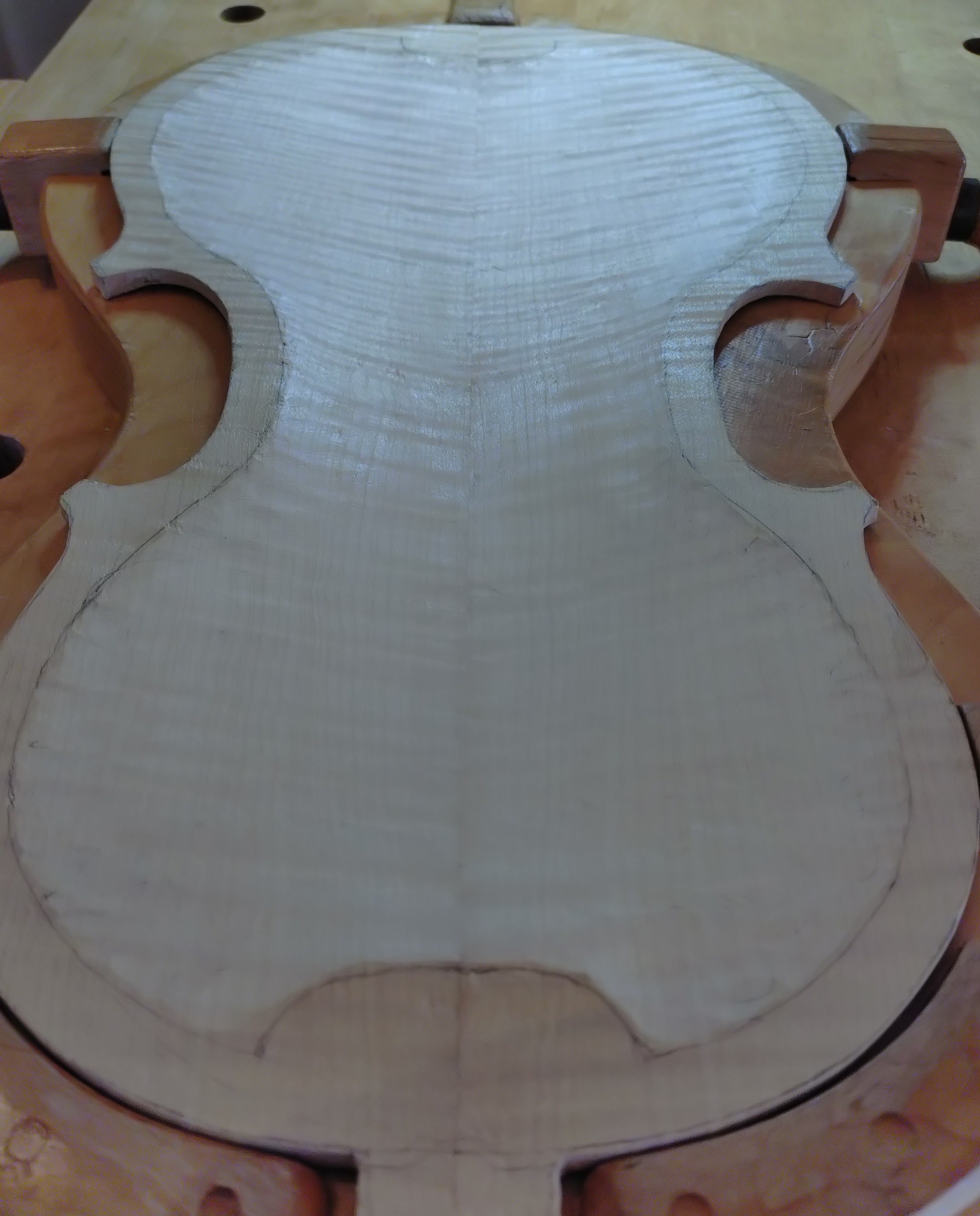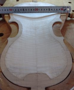 裏板の厚出しを終えました。 各ポイントの厚さを測り最後は手の感触で良しとしました。 毎回どこで良しとするかは悩みます。